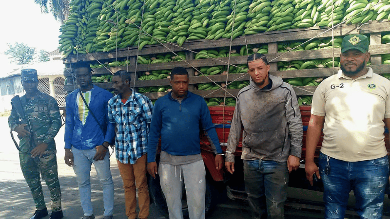 Montecristi, República Dominicana – En una operación realizada por miembros del Ejército de la República Dominicana, fueron detenidos dos hombres de nacionalidad dominicana cuando transportaban a dos nacionales haitianos indocumentados en un camión cargado de guineos verdes. El hecho ocurrió en el puesto de chequeo militar Bontoncillo, ubicado en Montecristi.